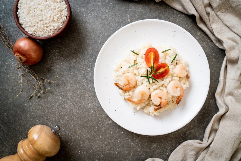 Ризотто с креветками в сливочном соусе Вкусное блюдо для любителей итальянского ризотто и блюд из креветок. Сливочно, нежно, сытно! Еда и рецепты 33 820
