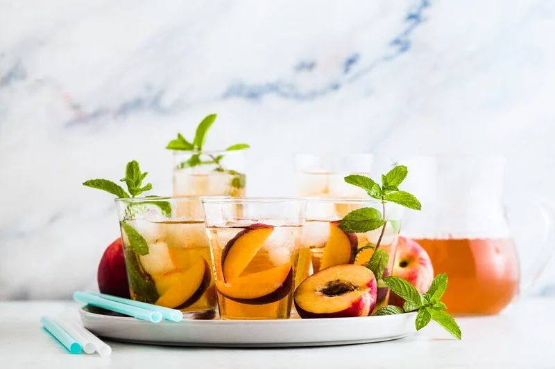 Рецепт холодного чая с персиком и чабрецом в домашних условиях Прохладительные напитки можно делать самому. Еда и рецепты 13 141