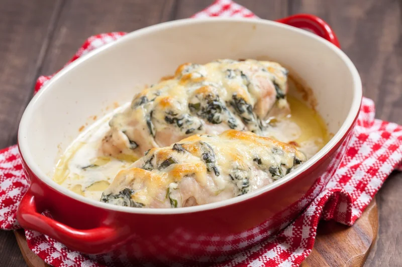 Рыба, запечённая с сыром и шпинатом Сочное филе белой рыбы, запечённое под нежной сырно-шпинатной шапочкой, – отличный вариант лёгкого ужина. Еда и рецепты 32 704