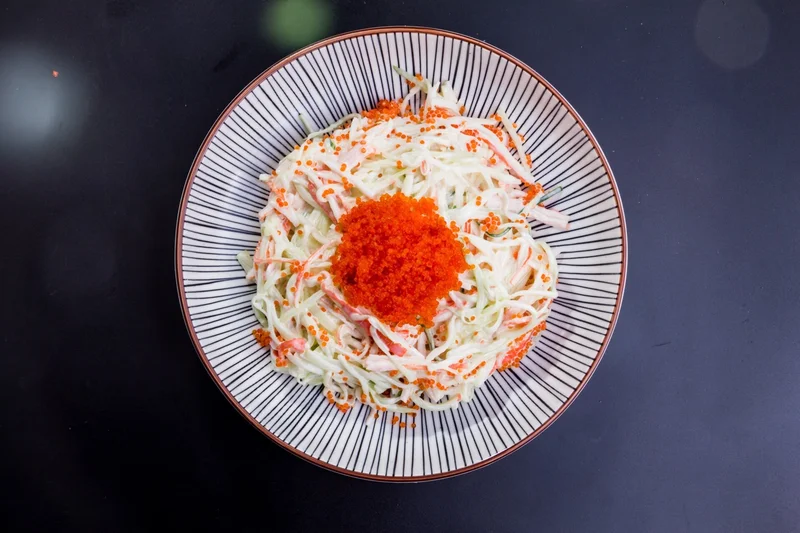 Праздничный салат с крабовыми палочками и корейской морковью Этот салат не смотря на простой состав имеет необыкновенно пикантный вкус благодаря сочетанию корейской моркови с оливками и крабовыми палочками. Еда и рецепты 11 090