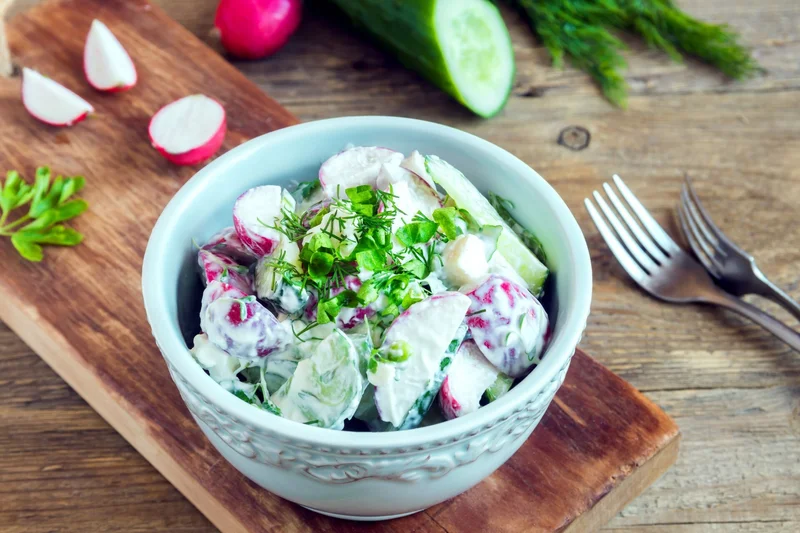 Салат из свежей капусты с редисом и сметаной Салат с молодой капустой и редисом чрезвычайно популярен в конце весны и начале лета, когда на огороде ещё нет свежих овощей. Еда и рецепты 34 809