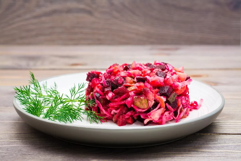 Свекольный салат с изюмом Многие из нас на новогодний стол традиционно готовят салат со свеклой и чесноком. Еда и рецепты 20 110
