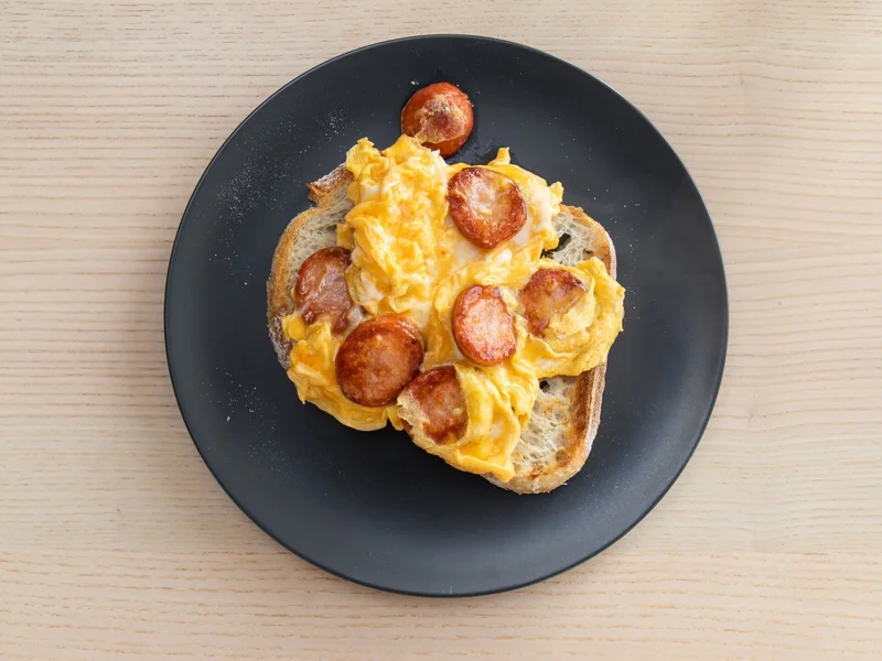 Яичница с сосисками в тостовом хлебе Источник фото: https://ru.123rf.com/profile_darylariawan